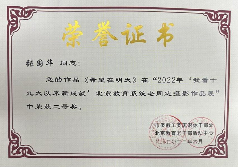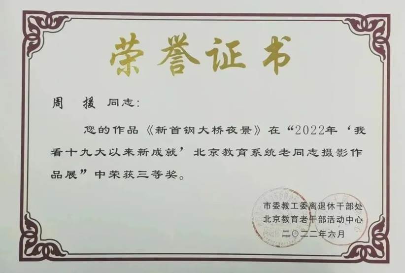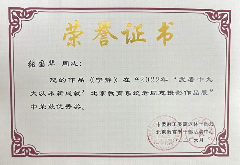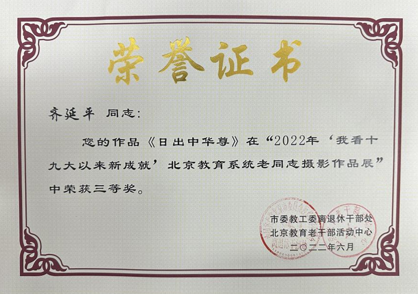 2022年3月,我校组织离退休教职工参加“2022年‘我看十九大以来新成就’——北京教育系统老同志摄影作品展”。摄影协会的老师们以灵动多姿的光影之美讴歌党的十九大以来党和国家事业取得举世瞩目的重大成就,礼赞伟大新征程。