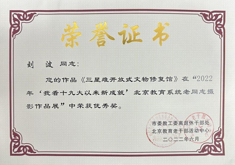 我校共报送作品12幅(件),所报作品全部获奖。其中,获得一等奖2项,二等奖3项,三等奖3项,优秀奖4项。8幅作品入辑“我看十九大以来新成就”《北京教育系统老同志线上摄影作品展优秀作品集》。