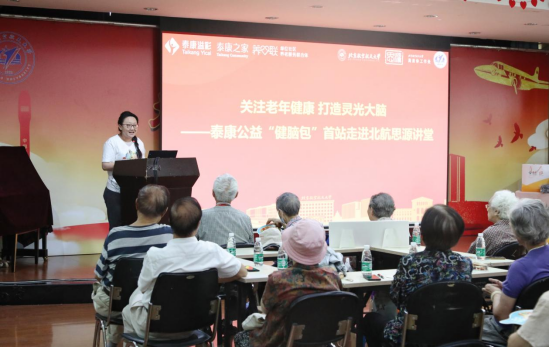 在活动中,泰康之家服务运营中心服务管理部副总经理何睿向老同志们介绍了“活出年轻大脑健康包”(简称“健脑包”)的基本情况。她谈到,这款“健脑包”产品从设计到研发,融合了脑健康、老年文娱、老年运动健康专家及泰康之家社区居民的多方智慧,设计初衷就是让老年人时刻关注大脑健康,拥有主动健康的实用工具。