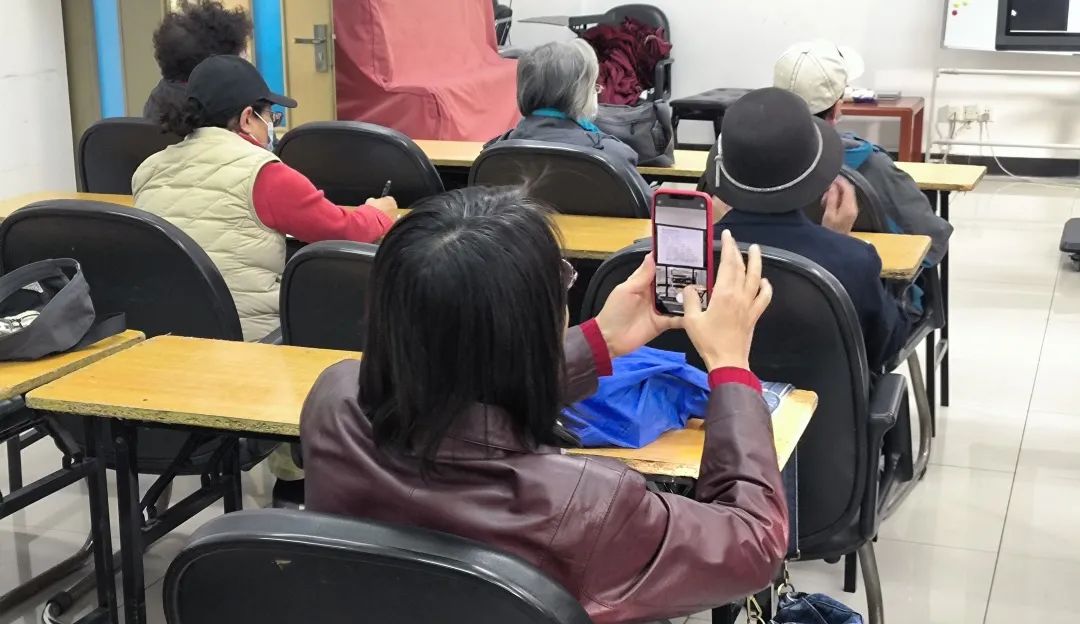 台下老同志认真听讲,拿起纸张认真做笔记,用手机拍下关键知识点,对摄影后期的认识在不断加深。