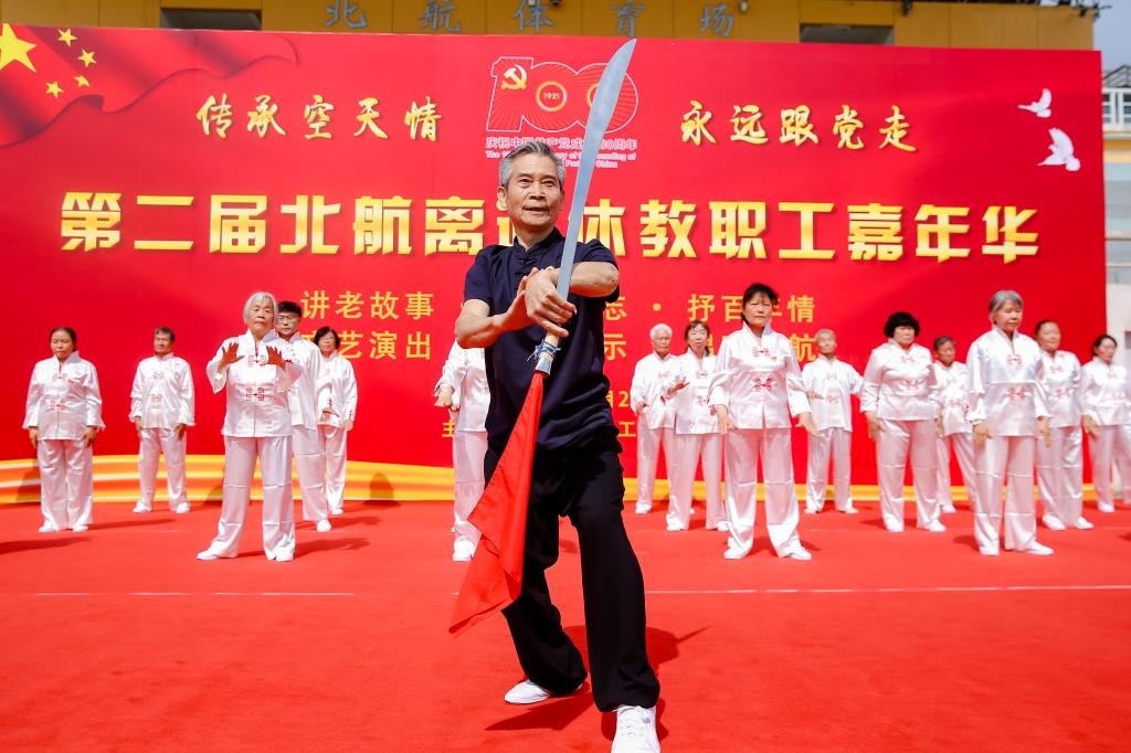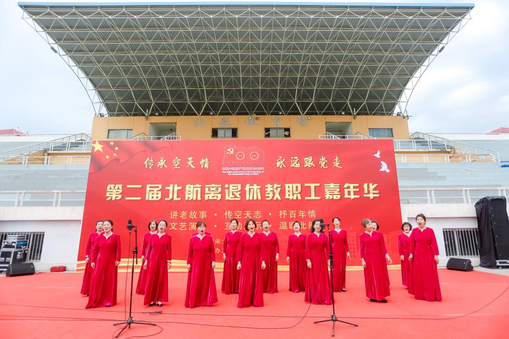 为迎接庆祝中国共产党成立100周年,老同志准备了丰富多彩的文体节目,展现阳光心态,抒发对党、对祖国、对北航的热爱之情!现场观众兴致勃勃地观看了文艺演出。