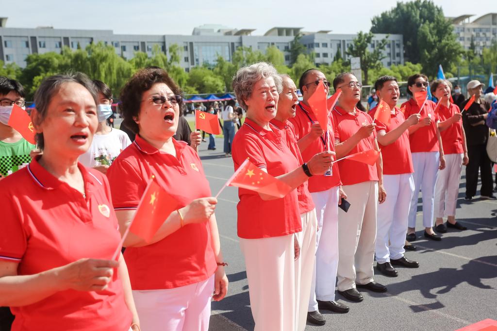 开幕仪式在《天耀中华》和《没有共产党就没有新中国》暖场快闪的旋律中拉开帷幕。老同志、大学生志愿者以快闪方式演唱《没有共产党就没有新中国》,共同表达“永远跟党走”的爱党爱国情怀。
