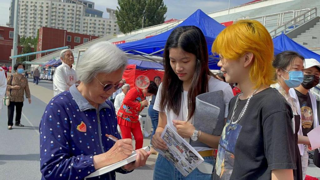 新媒体艺术与设计学院学生将《空天报国志》中的老故事创作成漫画,并现场采访空天报国志》作者周耀珊老师。