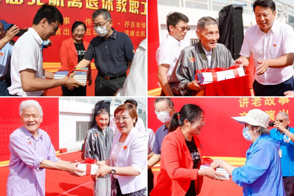 《空天报国志》作者代表冯宗律、屠庆慈、孙世长、余英杰四位老师向北航大学生代表赠送书籍。